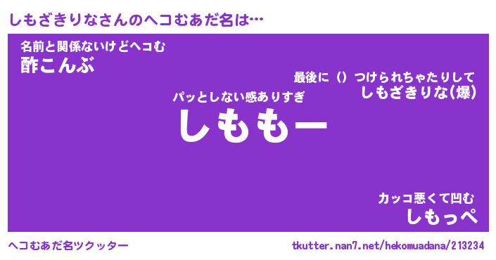| 2回繰り返すあだ名 | 『しもしも』『ししもも』『ぬらぬら』 |