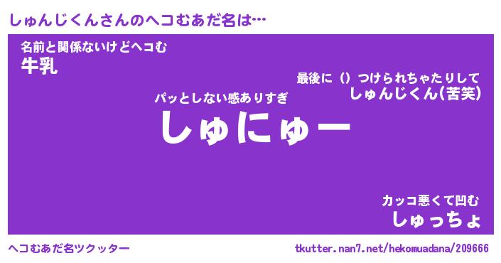 | 男性向けラノベタイトル風あだ名 | 『しゅんじくんの憂鬱』 |