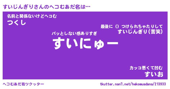 | ツイッター | すいじんぎりさんのツイッターID『namakemono_idle』 |