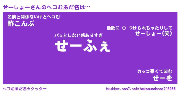 | 2回繰り返すあだ名 | 『せーせー』『せせーー』『ぷるぷる』 |