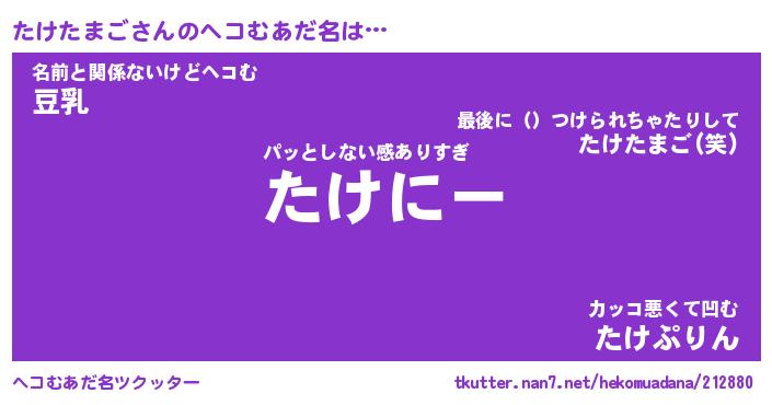 | ファンタジー風あだ名 | 『タケフェル』『エターナルタケタマゴー』 |