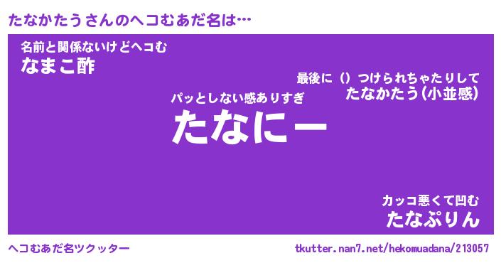 | 2回繰り返すあだ名 | 『たなたな』『たたなな』『ぬぷぬぷ』 |