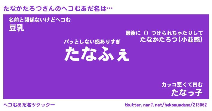 | ポケモン風あだ名 | 『タナチュウ』『タナカダネ』 |