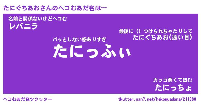 | 意味不明あだ名 | 『ペロリンたにぐちあお』 |