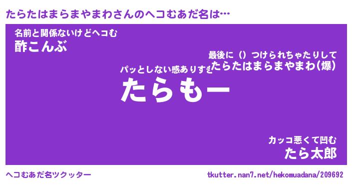 | ヒーロー風カッコイイあだ名 | 『スーパータラタハマラマヤマワ』 |