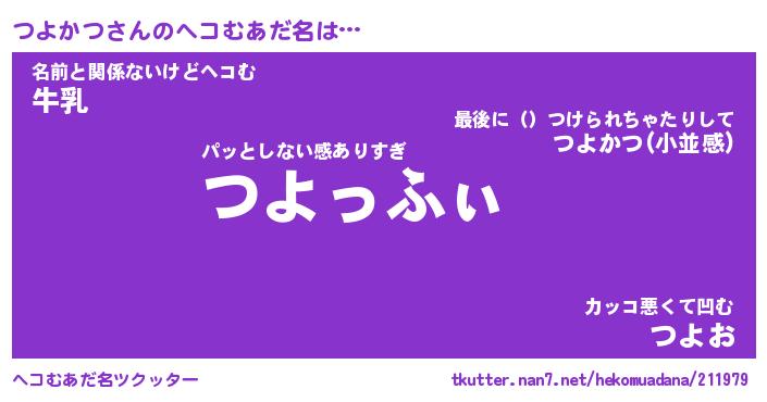 | ファンタジー風あだ名 | 『ツヨフェル』『エターナルツヨカツー』 |