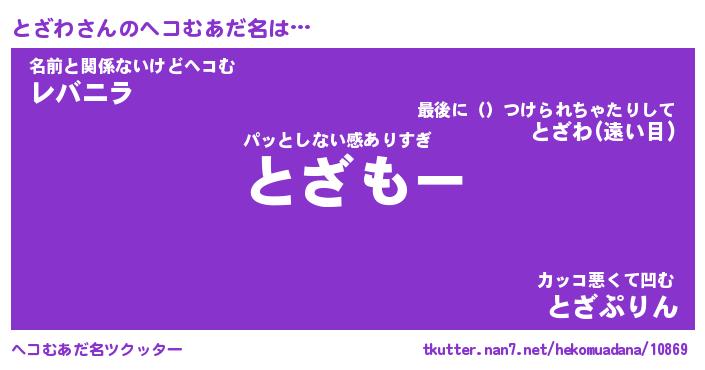 | 男性向けラノベタイトル風あだ名 | 『とざわの憂鬱』 |