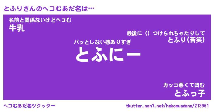 | ポケモン風あだ名 | 『トフチュウ』『トフリダネ』 |