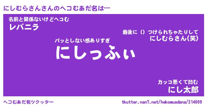 | ファンタジー風あだ名 | 『ニシフェル』『ファントムニシス』 |