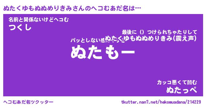 | 2回繰り返すあだ名 | 『ぬたぬた』『ぬぬたた』『ぬるぬる』 |