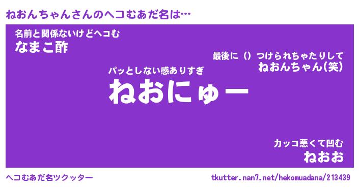 | 意味不明あだ名 | 『ペロリンねおんちゃん』 |