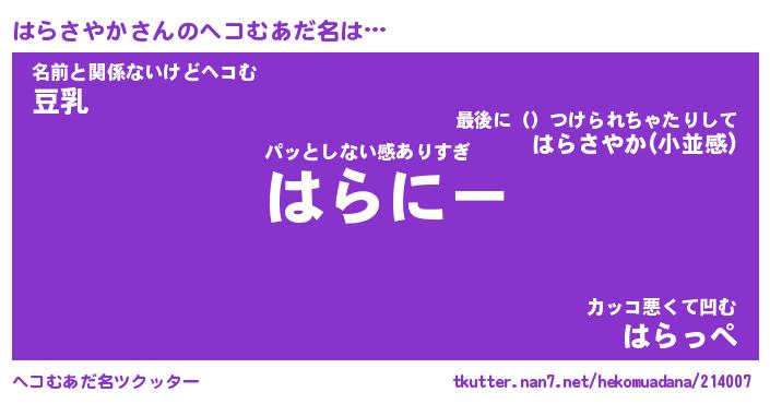 | ファンタジー風あだ名 | 『ハラフェル』『エターナルハラサヤカー』 |