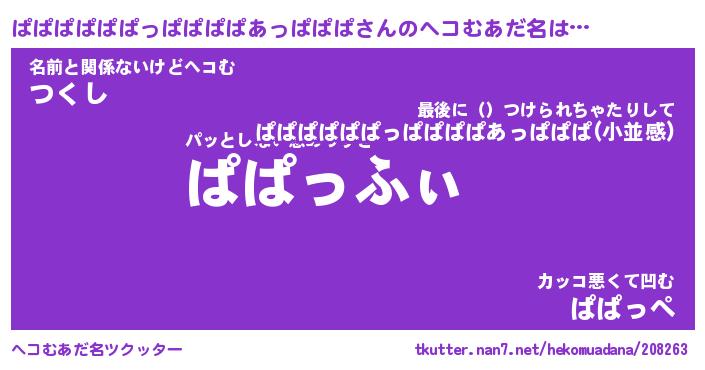 | 男性向けラノベタイトル風あだ名 | 『ぱぱぱぱぱぱっぱぱぱぱあっぱぱぱの憂鬱』 |