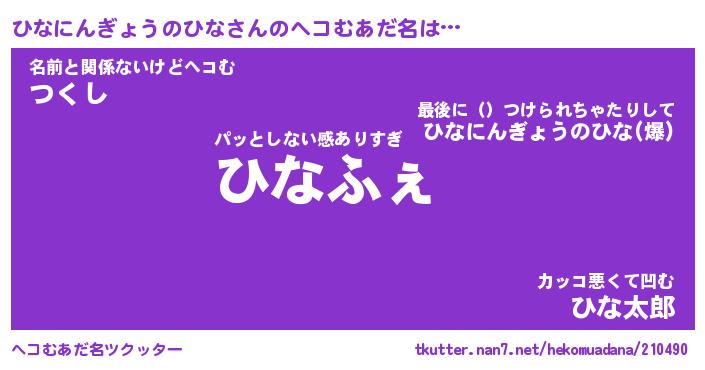 | ヒーロー風カッコイイあだ名 | 『スーパーヒナニンギョウノヒナ』 |