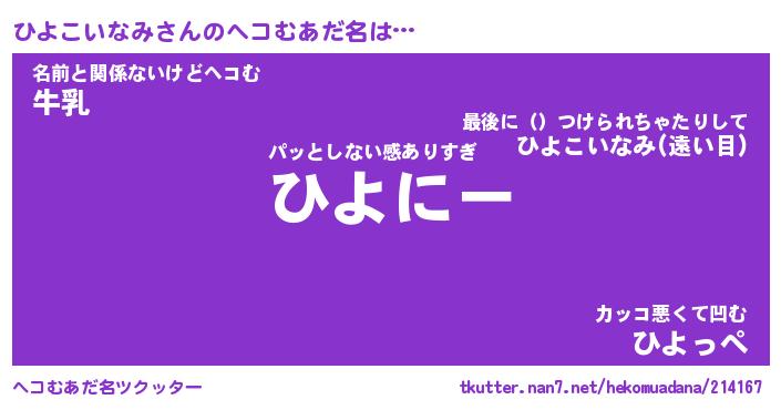 | 恥ずかしいあだ名 | 『プリティーひよこいなみ』『ひよっちょ』 |