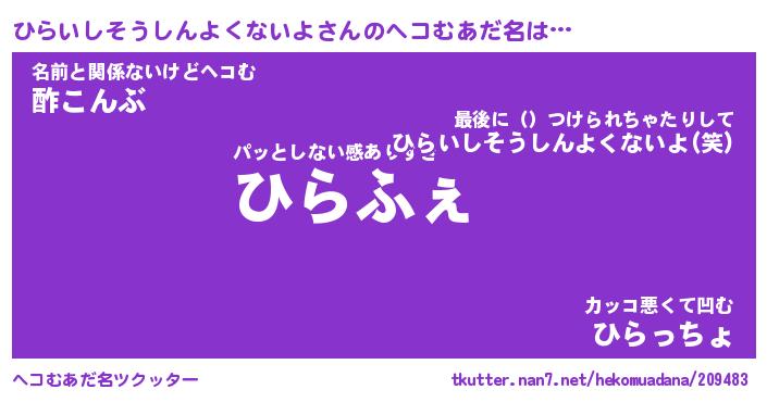 | ヒーロー風カッコイイあだ名 | 『スーパーヒライシソウシンヨクナイヨ』 |