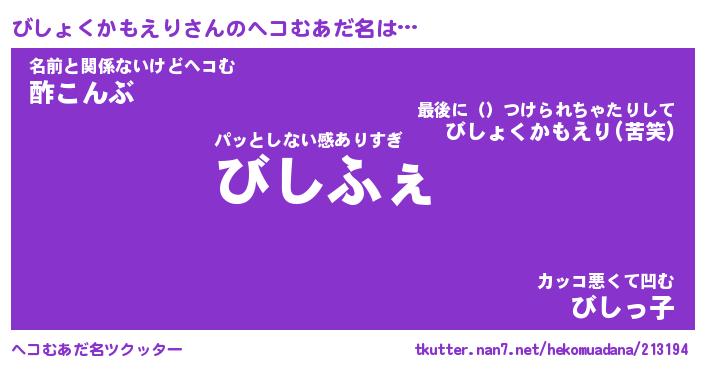 | 欧米人風あだ名 | 『マイケルびしょくかもえり』 |
