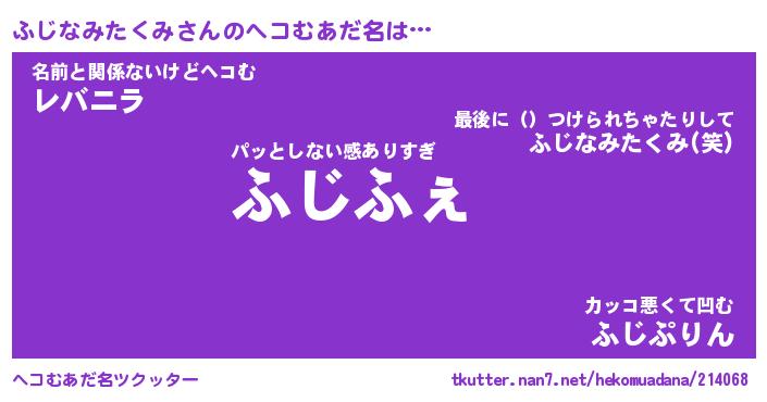 | 意味不明あだ名 | 『ペロリンふじなみたくみ』 |