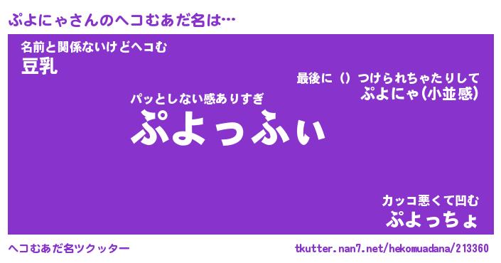 | ポケモン風あだ名 | 『プヨチュウ』『プヨニダネ』 |