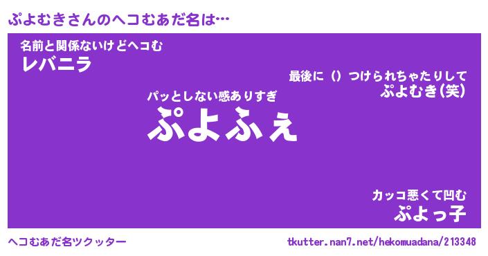 | 意味不明あだ名 | 『ペロリンぷよむき』『永久保存ぷよむき』 |