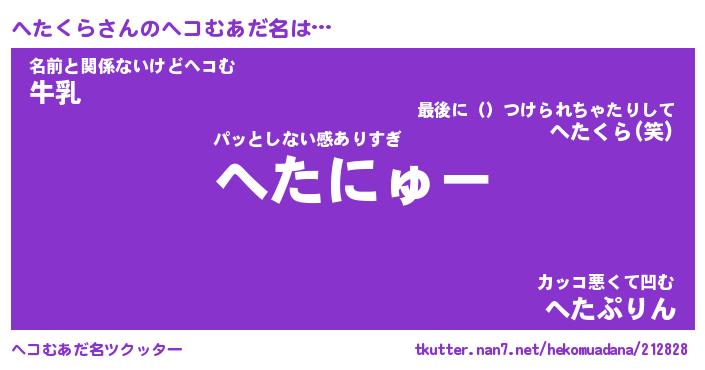 | 意味不明あだ名 | 『ペロリンへたくら』『永久保存へたくら』 |