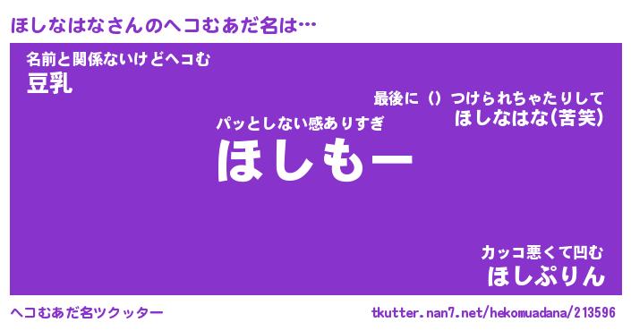 | 胡散臭い通販商品みたいなあだ名 | 『モテモテ間違いなし霊験あらたかなお札…その名も「ほしなはな」』 |