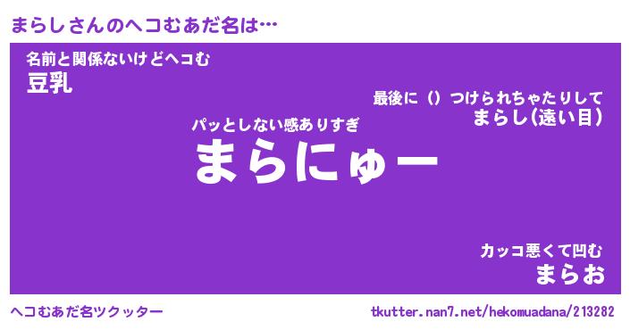 | 意味不明あだ名 | 『ペロリンまらし』『まらしフォーエバー』 |