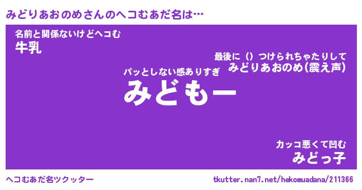 | 男性向けラノベタイトル風あだ名 | 『みどりあおのめの憂鬱』 |