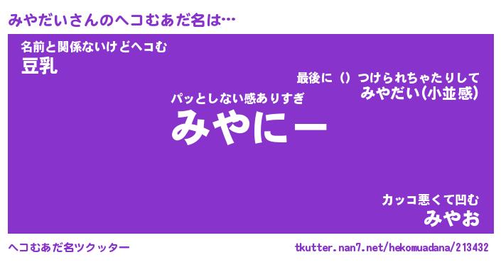 | 意味不明あだ名 | 『ペロリンみやだい』『永久保存みやだい』 |