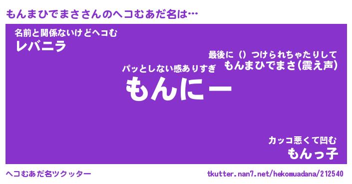 | 男性向けラノベタイトル風あだ名 | 『もんまひでまさの憂鬱』 |