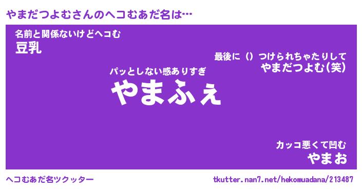 | 自動車の名前っぽいあだ名 | 『ヤマティマ』『ヤクア』『デミヤ』 |