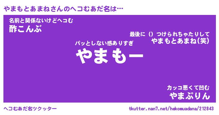 | 2回繰り返すあだ名 | 『やまやま』『ややまま』『ぬぷぬぷ』 |