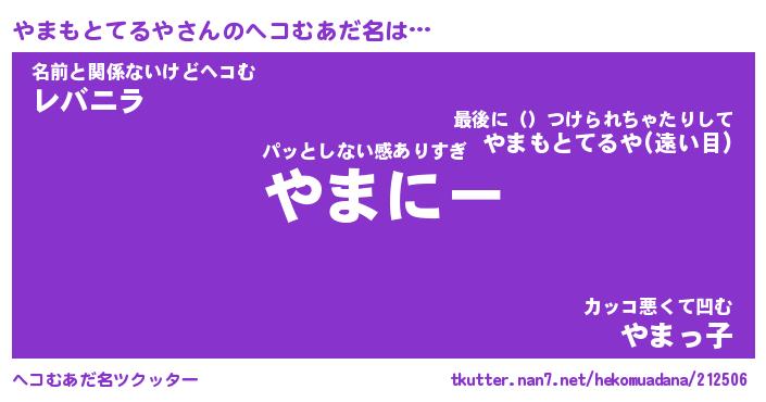 | 自動車の名前っぽいあだ名 | 『ヤマティマ』『ヤクア』『ヤント』 |