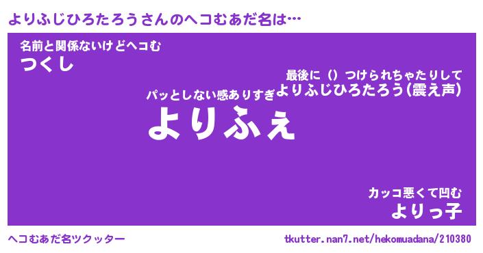 | 胡散臭い通販商品みたいなあだ名 | 『億万長者になれる水晶球…その名も「よりふじひろたろう」』 |