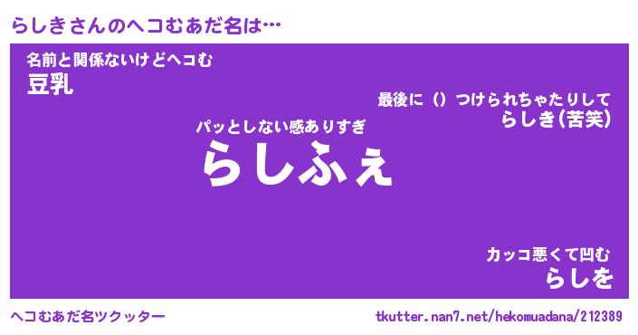 | ヒーロー風カッコイイあだ名 | 『スーパーラシキ』『ウルトラらしきマン』 |
