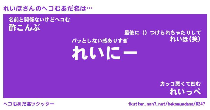 | 意味不明あだ名 | 『ペロリンれいほ』『れいほフォーエバー』 |