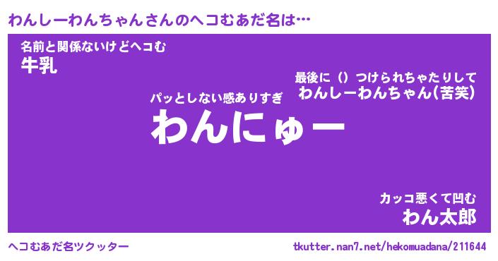 | 2回繰り返すあだ名 | 『わんわん』『わわんん』『なあなあ』 |