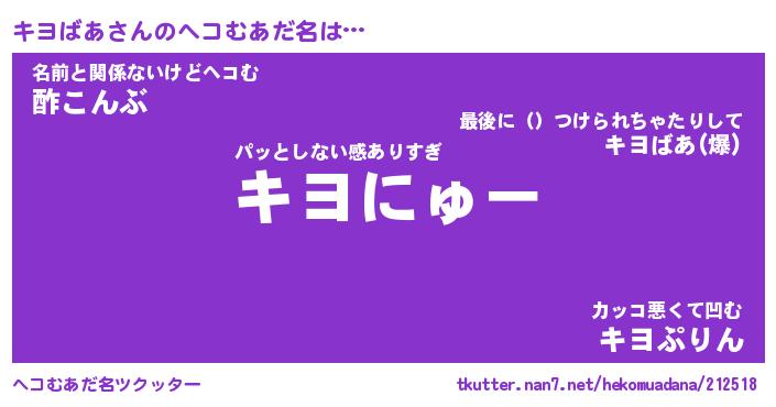 | 意味不明あだ名 | 『ペロリンキヨばあ』『永久保存キヨばあ』 |
