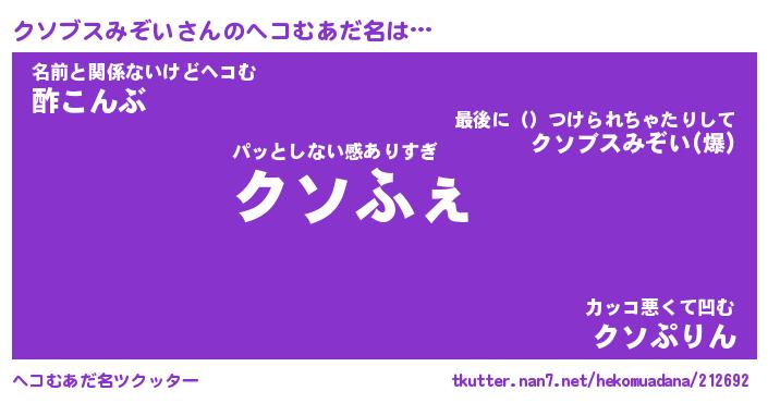 | ヒーロー風カッコイイあだ名 | 『スーパークソブスミゾイ』 |