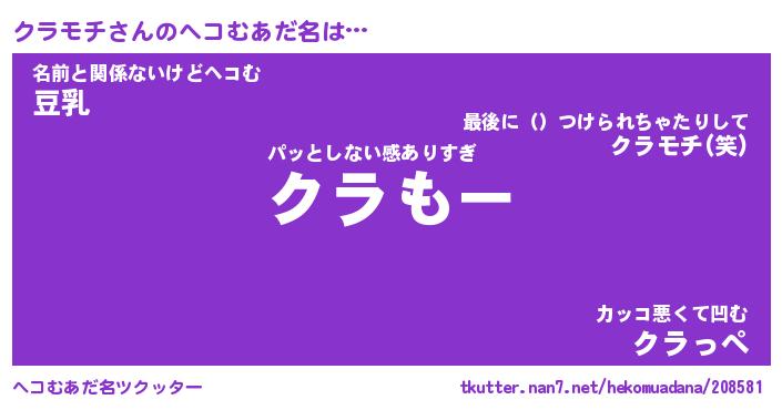 | 意味不明あだ名 | 『ペロリンクラモチ』『永久保存クラモチ』 |