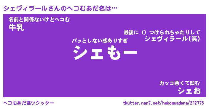 | 男性向けラノベタイトル風あだ名 | 『シェヴィラールアートオンライン』 |