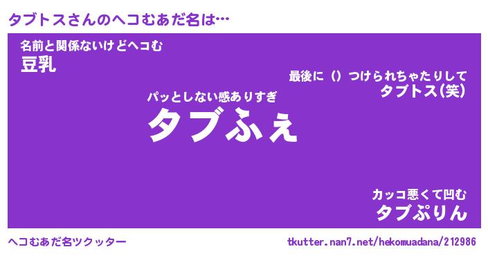 | ポケモン風あだ名 | 『タブチュウ』『タブトダネ』 |