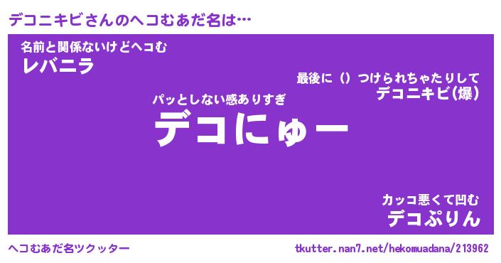 | 2回繰り返すあだ名 | 『デコデコ』『デデココ』『ぬらぬら』 |