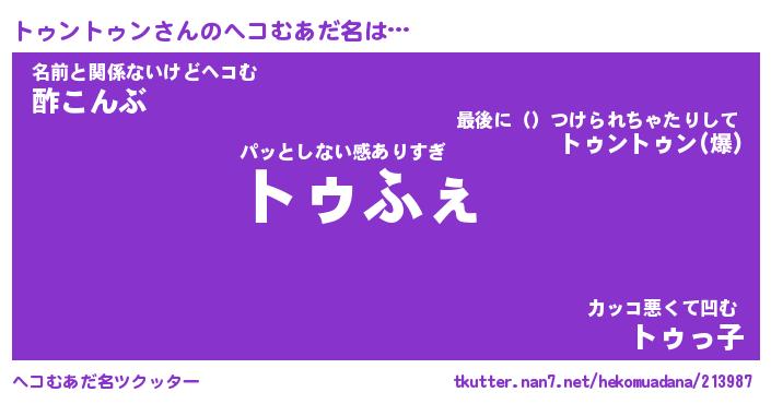 | 料理風あだ名 | 『節約★トゥントゥンと油揚げの玉子丼』 |