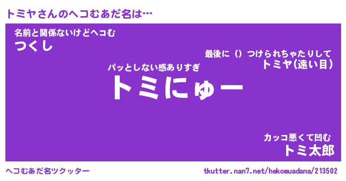 | 自動車の名前っぽいあだ名 | 『トミティマ』『トクア』『トント』 |