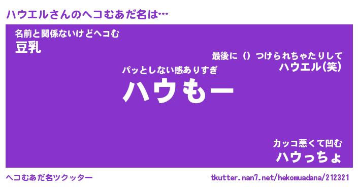 | ファンタジー風あだ名 | 『ハウフェル』『エターナルハウエルー』 |