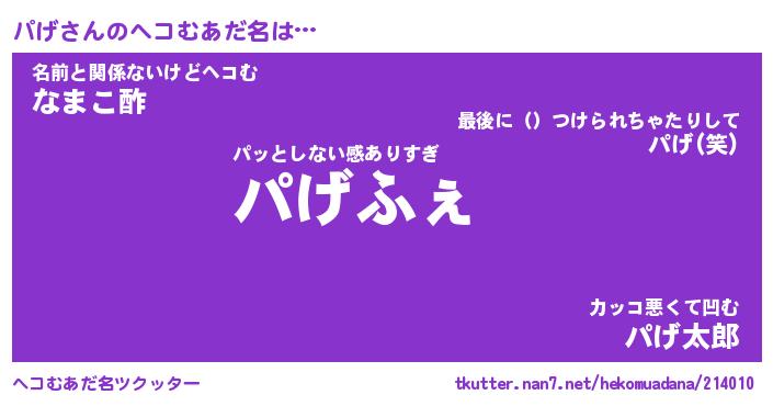 | ヒーロー風カッコイイあだ名 | 『スーパーパゲ』『ウルトラパげマン』 |