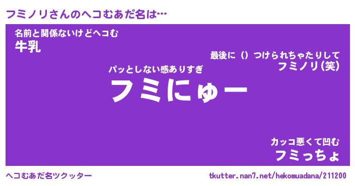 | 2回繰り返すあだ名 | 『フミフミ』『フフミミ』『ぬらぬら』 |
