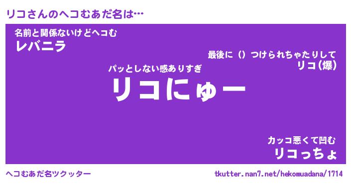 | 意味不明あだ名 | 『ペロリンリコ』『リコフォーエバー』 |