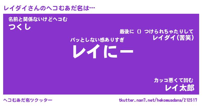 | 意味不明あだ名 | 『ペロリンレイダイ』『永久保存レイダイ』 |